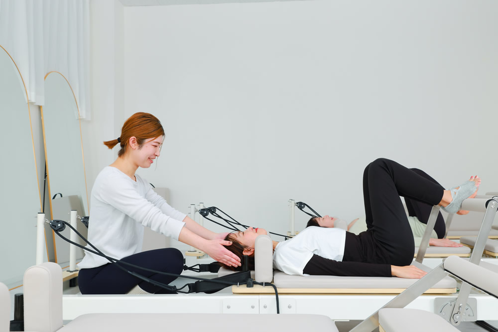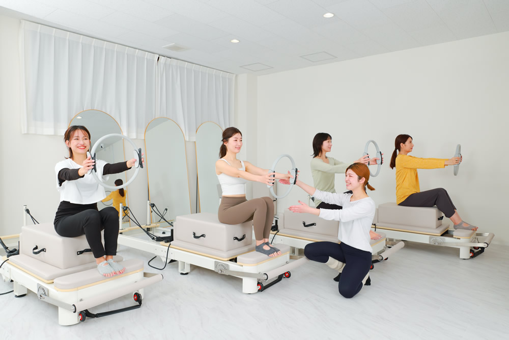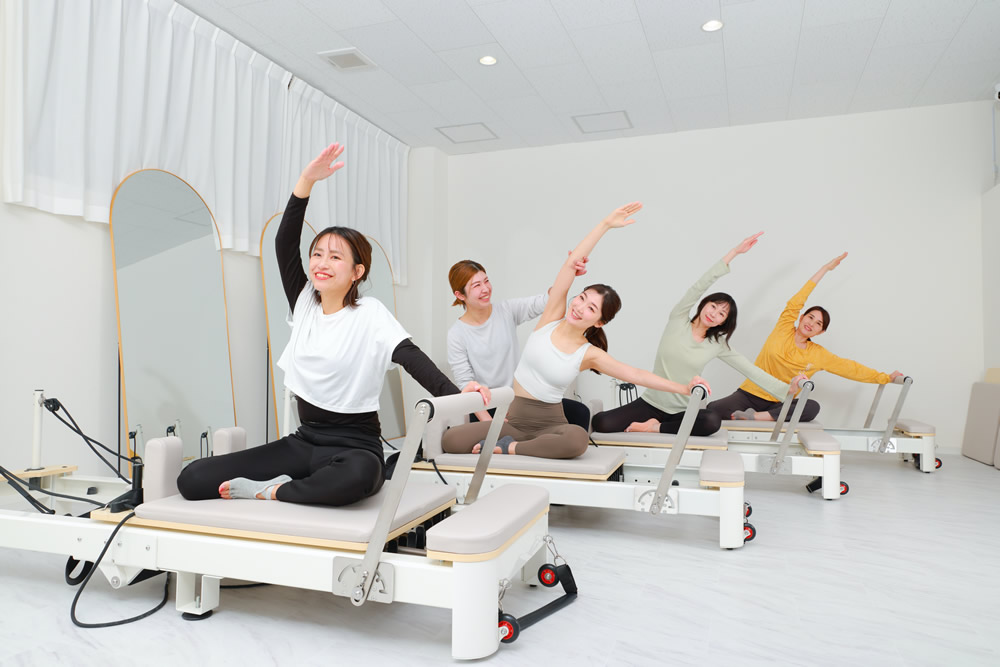 特に、リフォーマーという器具を使うマシンピラティスは、初心者から上級者の方まで、長く楽しんでいただけます。