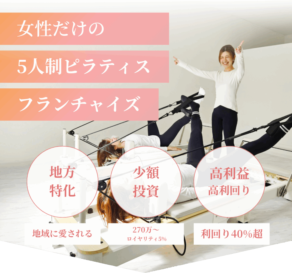 5pilatesは、全国FC展開を前提に仕組みを作った「女性だけの5人制マシンピラティス専門スタジオ」です。