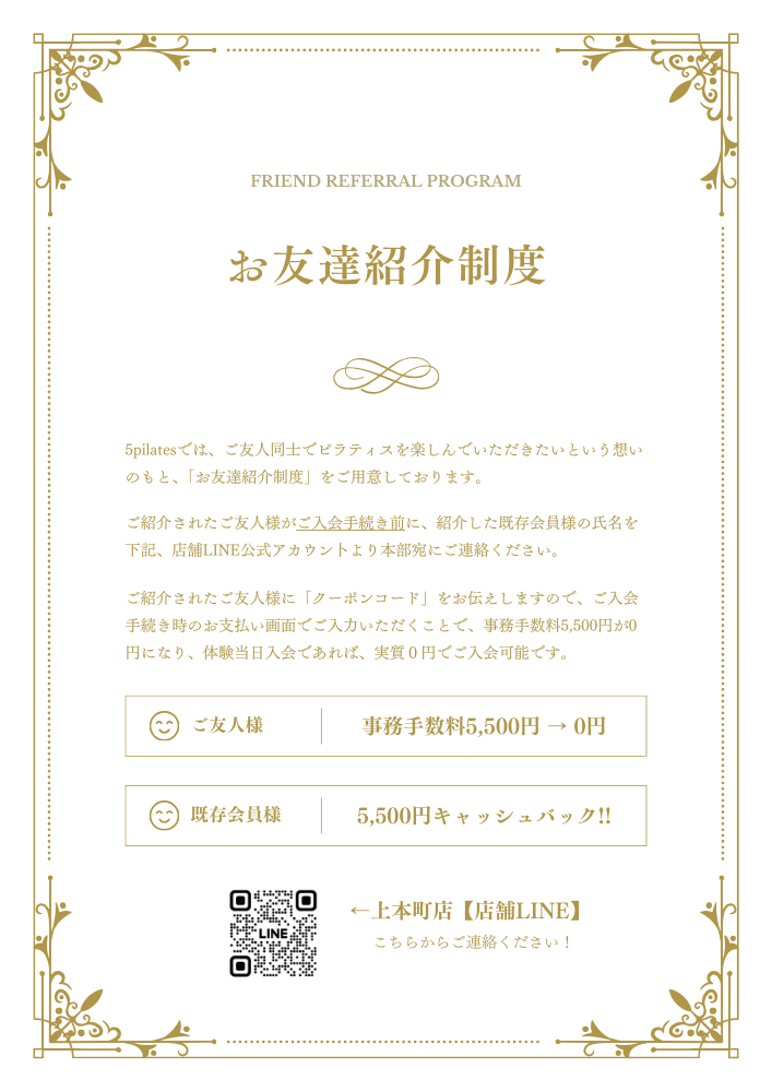 以上が、5pilatesの「5plan」になります。